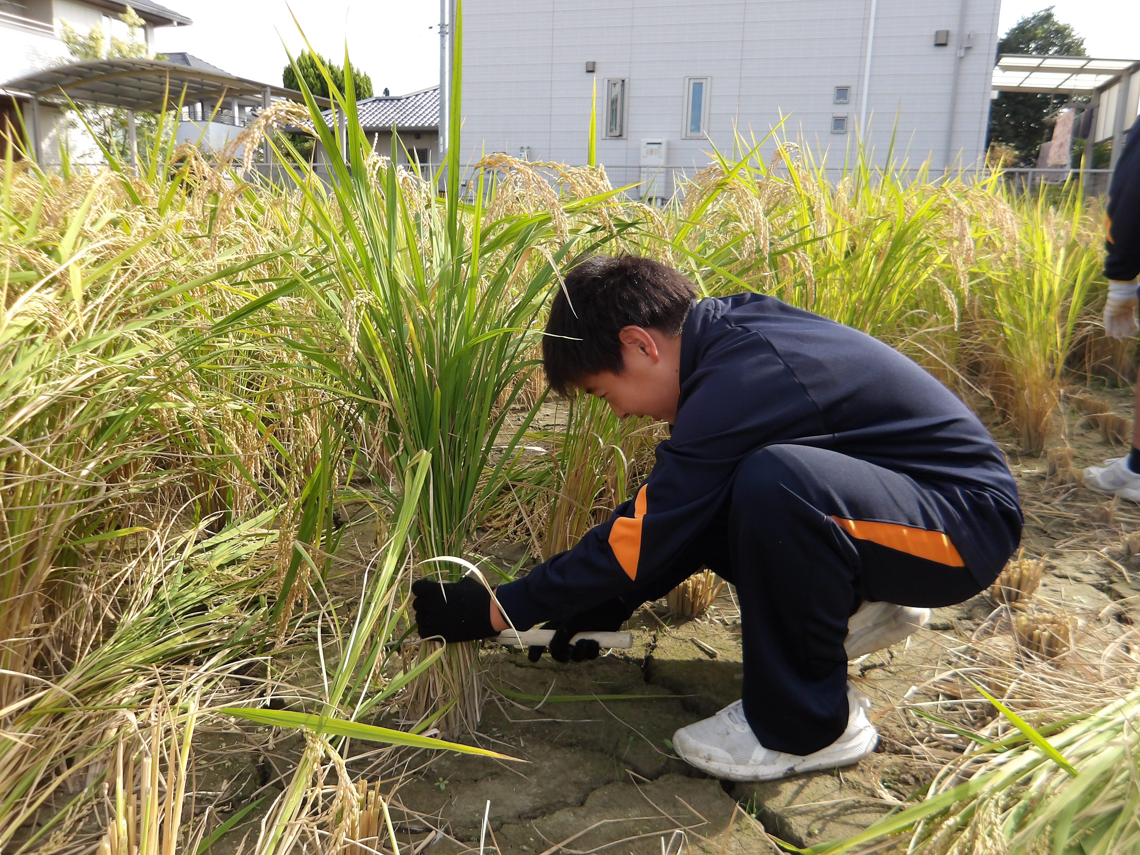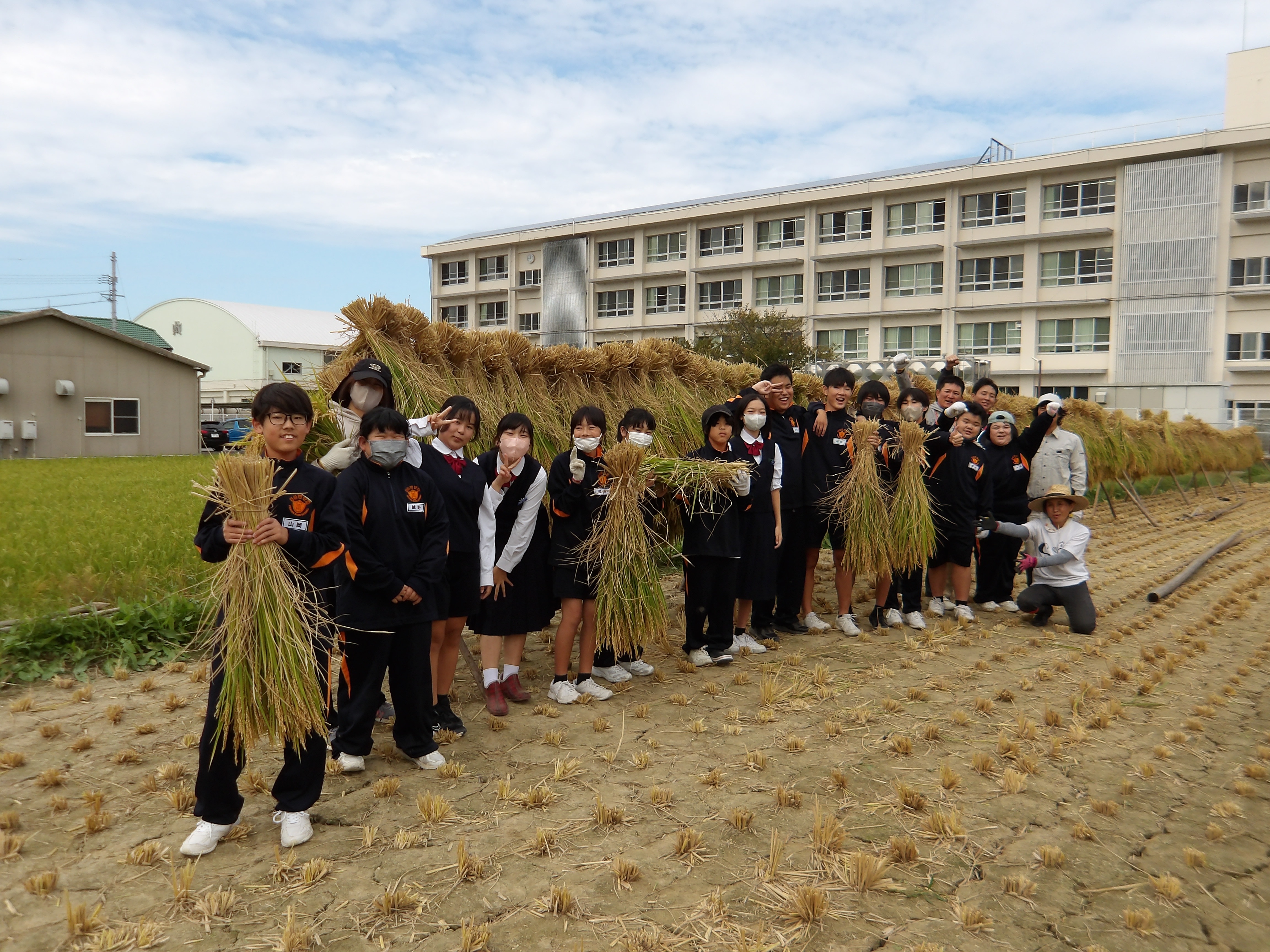 本日、特別支援学級は、中学校南側の二中ファームで稲刈りを行いました。今日一生懸命収穫したお米は、後日給食で生徒の皆さんに提供されます。また、体育館では「えひめこども美術展」の審査会が行われました。松山市の小中学生が作成した美術作品の中でも優秀な作品が、時間をかけてじっくりと選ばれていました。秋ならではの行事がこれからも続きます。とても楽しみですね。