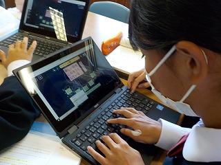 2021年10月19日 15時23分本日、校内研究授業が行われました。ロイロノートの思考ツールで各個人の考えをまとめ、班で共有後に一つにつなげ、プレゼンテーション資料として発表に用いました。また、学習の振り返り・自己評価のアンケートもタブレットで行い、学習の様子を確かに見取り、さらに伸ばす学習に生かしていきたいと思います。